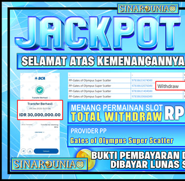 Selamat kepada USERID W*****4 atas kemenangannya disitus SINARDUNIA88 Sebesar RP 30,000.000,_
